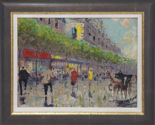 <span class='ref_item'>57 -</span> <span class="object_title">VISTA URBANA</span>   <p><span class="author">ESCUELA ESPAÑOLA CONTEMPORÁNEA  </span> <br><span class="technique_material">Óleo sobre lienzo</span><br><span class="technical_description">Representa la calle de una ciudad con varios transeúntes y un carro tirado por caballo, destacando la rapidez de la pincelada y el minucioso trabajo del color.<br/>Firmado Brassó en el ángulo inferior derecho.<br/>Enmarcado en madera teñida y dorada.<br/>Medidas con marco: 42x52cm</span><br></p>