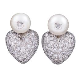 <span class='ref_item'>4 -</span> <span class="object_title">PENDIENTES EN ORO DE 18KT, PERLAS CULTIVADAS Y DIAMANTES</span>  <p><span class="technical_description">Pendientes realizados en oro de 18kt. Compuestos en su parte superior por perlas cultivadas de color blanco, calibradas en 9,7-10,2mm, perforadas en su parte central. Adornadas por un diamante cada una en talla brillante engastado en chatón con un peso total aprox de 0,04ct. La parte inferior, en forma de corazón, está formada por un cuajado de diamantes en talla brillante engastados en grano con un peso total aprox de 3,75ct<br/>Cierre: Omega<br/>Longitud: 2,5cm</span><br>Peso: <span class="PESO_HCES1">16,20</span> <span class="PESOUMED_HCES1">gr.</span><br></p>