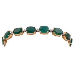 <span class='ref_item'>2 -</span> <span class="object_title">PULSERA EN ORO BICOLOR 14KT, ESMERALDAS Y DIAMANTES</span>  <p><span class="technical_description">Pulsera realizada en oro bicolor de 14kt con esmeraldas en talla oval colocadas en degradé, engastados garras, con un peso total aprox de 30ct. Alternando con diamantes en talla brillante, engastados en chatón sobre vistas en blanco con un peso total aprox de 0.10ct. <br/>Cierre: Caja con lengüeta y doble ocho de seguridad<br/>Longitud: 18cm</span><br>Peso: <span class="PESO_HCES1">17,40</span> <span class="PESOUMED_HCES1">gr.</span><br></p>