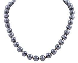 <span class='ref_item'>69 -</span> <span class="object_title">COLLAR DE HEMATITES Y METAL DORADO</span>  <p><span class="technical_description">Collar formado por cuentas de hematites pulidas y calibradas en 12mm. Con broche y pasadores en metal dorado.<br/>Cierre: Langosta<br/>Longitud: 51 cm</span><br>Peso: <span class="PESO_HCES1">151,80</span> <span class="PESOUMED_HCES1">gr.</span><br></p>