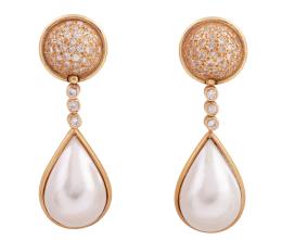 <span class='ref_item'>60 -</span> <span class="object_title">PENDIENTES EN ORO 18KT, DIAMANTES Y PERLAS MABE</span>  <p><span class="technical_description">Pareja de pendientes largos con movimiento realizados en oro de 18kt. Formados por pavé y fila de diamantes en talla brillante con peso total aprox 0.60ct y remate de perlas mabe en forma de gota.<br/>Cierre: Omega<br/>Longitud: 5cm</span><br>Peso: <span class="PESO_HCES1">17,20</span> <span class="PESOUMED_HCES1">gr.</span><br></p>