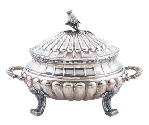 <span class='ref_item'>213 -</span> <span class="object_title">SOPERA EN PLATA 916</span>  <p><span class="technical_description">Sopera realizada en plata 916, con tapa, dos asas, patas, repujada en cuerpo y decorada con motivo floral. Con contrastes<br/>Medidas: 30 x 38 x 23cm<br/>Peso de la plata: 1630gr</span><br></p>
