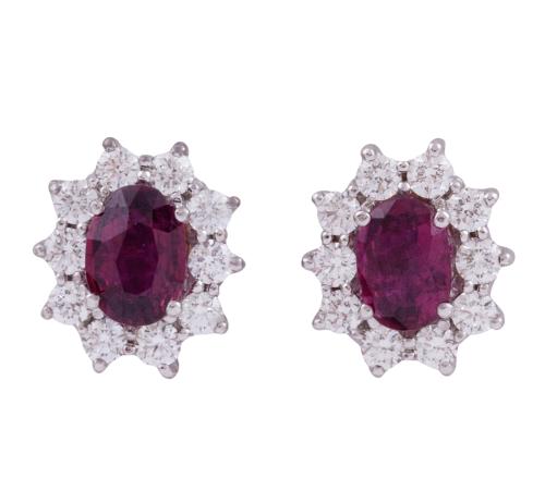<span class='ref_item'>35 -</span> <span class="object_title">PENDIENTES EN ORO 18KT, RUBÍES SIN TRATAR Y DIAMANTES</span>  <p><span class="technical_description">Par de pendientes realizados en oro de 18kt. Diseño de roseta con rubíes centrales sin tratamiento en talla oval con peso total aprox 2ct y en orla diamantes en talla brillante con peso total aprox 1.08ct.<br/>Cierre: Presión</span><br>Peso: <span class="PESO_HCES1">4,70</span> <span class="PESOUMED_HCES1">gr.</span><br></p>