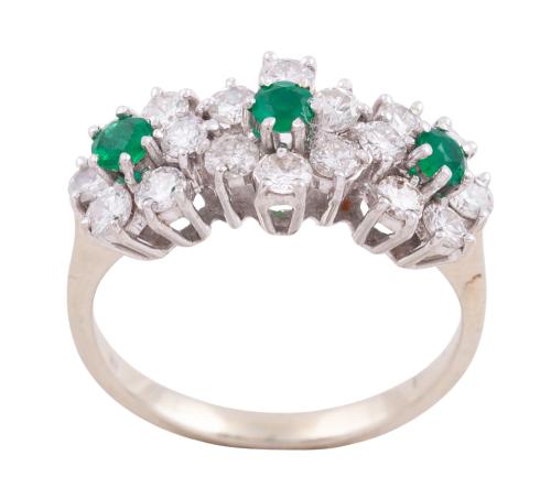 <span class='ref_item'>58 -</span> <span class="object_title">TRESILLO EN ORO 18KT, ESMERALDAS Y DIAMANATES</span>  <p><span class="technical_description">Sortija tresillo realizada en oro de 18kt. Diseño de 3 flores con esmeraldas en el centro en talla redonda con peso total aprox 0.20ct y orlas de diamantes en talla brillante con peso total aprox 0.36ct<br/>Medida Sortija: 11</span><br>Peso: <span class="PESO_HCES1">3,50</span> <span class="PESOUMED_HCES1">gr.</span><br></p>