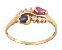 <span class='ref_item'>125 -</span> <span class="object_title">SORTIJA EN ORO 18KT, RUBÍ, ZAFIRO Y ZAFIROS BLANCOS</span>  <p><span class="technical_description">Sortija realizada en oro de 18kt. Adornada con un zafiro en talla perilla con peso aprox 0.20ct y rubí en talla perilla con peso aprox 0.20ct, y 6 zafiros blancos<br/>Medida Sortija: 15</span><br>Peso: <span class="PESO_HCES1">2,40</span> <span class="PESOUMED_HCES1">gr.</span><br></p>