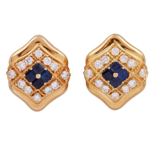 <span class='ref_item'>152 -</span> <span class="object_title">PENDIENTES "J.YANES" EN ORO 18KT, ZAFIROS Y DIAMANTES</span>  <p><span class="technical_description">Par de pendientes de la joyería "J.Yanes", colección Malpica, realizados en oro de 18kt. Centro de zafiros en talla carré con peso total aprox 1.60ct, acompañados de diamantes en talla brillante entre cordoncillos típicos de la colección, con peso total aprox 2.75ct. Con Nº 10005 ambos<br/>Cierre: Omega</span><br>Peso: <span class="PESO_HCES1">31,60</span> <span class="PESOUMED_HCES1">gr.</span><br></p>