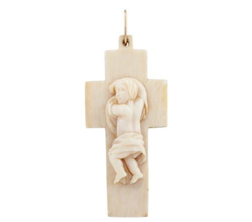 <span class='ref_item'>160 -</span> <span class="object_title">CRUZ EN HUESO CON ASA EN ORO BAJO</span>  <p><span class="technical_description">Colgante realizado en hueso con forma de cruz latina e imagen del niño Jesus. Asa realizada en oro bajo<br/>Medidas: 7 x 3,4cm</span><br>Peso: <span class="PESO_HCES1">11,80</span> <span class="PESOUMED_HCES1">gr.</span><br></p>