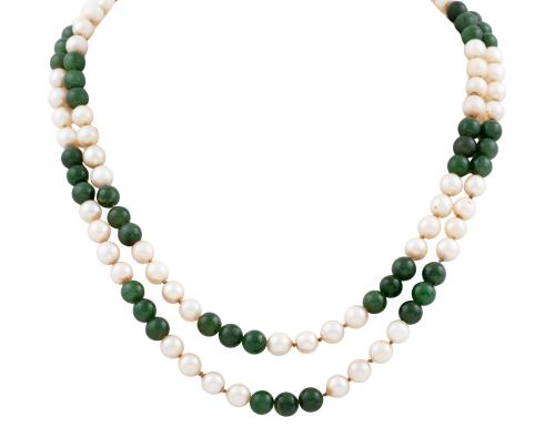 <span class='ref_item'>164 -</span> <span class="object_title">COLLAR DE PERLAS CULTIVADAS Y JADE CON BROCHE EN ORO 18KT</span>  <p><span class="technical_description">Collar de doble vuelta formado por perlas de cultivadas y cuentas esféricas de jade calibradas aprox en 8mm. Broche en oro de 18kt tipo clip<br/>Longitud: 133cm</span><br>Peso: <span class="PESO_HCES1">112,50</span> <span class="PESOUMED_HCES1">gr.</span><br></p>