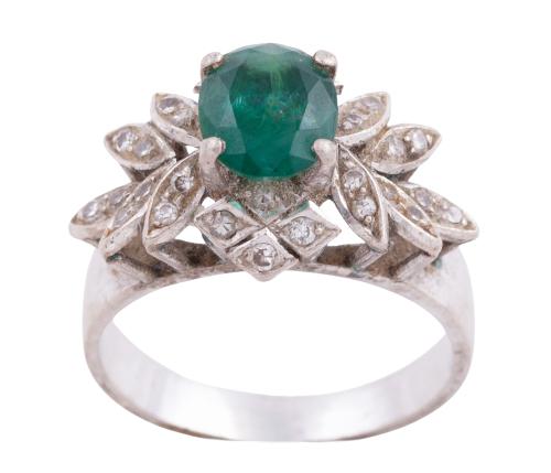 <span class='ref_item'>153 -</span> <span class="object_title">SORTIJA EN PLATA, ESMERALDA Y DIAMANTES</span>  <p><span class="technical_description">Sortija realizada en plata con chapado en oro. Esmeralda central en talla oval con peso total aprox 0.85ct y diamantes en talla rosa con peso total aprox 0.24ct<br/>Medida Sortija: 11</span><br>Peso: <span class="PESO_HCES1">4,50</span> <span class="PESOUMED_HCES1">gr.</span><br></p>