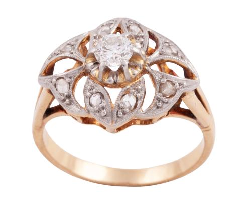 <span class='ref_item'>171 -</span> <span class="object_title">SORTIJA EN ORO 18KT Y DIAMANTES</span>  <p><span class="technical_description">Sortija realizada en oro de 18kt, estilo isabelino. Adornada por un diamante central en talla brillante con peso aprox 0.30ct y diamantes talla rosa sobre vistas en blanco de peso total aprox 0.05ct<br/>Medida Sortija: 9</span><br>Peso: <span class="PESO_HCES1">3,50</span> <span class="PESOUMED_HCES1">gr.</span><br></p>