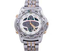 <span class='ref_item'>8 -</span> <span class="object_title">RELOJ CITIZEN EN ACERO. CUARZO</span>  <p><span class="technical_description">Reloj cronógrafo marca Citizen, modelo C400, realizado en acero. Movimiento de cuarzo. Caja de 42mm con bisel giratorio, agujas luminiscentes, alarma y pantalla digital con calendario e indicadores de cronógrafo. Resiste al agua 100 metros. Nº 590722, GN-4-S, C400-EB0320-K, C400-089631-Y, En estado de marcha</span><br>Peso: <span class="PESO_HCES1">106,80</span> <span class="PESOUMED_HCES1">gr.</span><br></p>