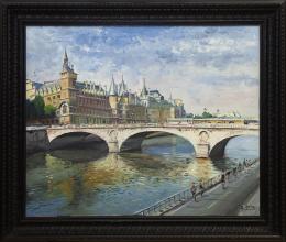 <span class='ref_item'>10 -</span> <span class="object_title">VISTA DEL PALACIO DE LA JUSTICIA, PARÍS</span>   <p><span class="author">SANTIAGO DÍAZ SANTOS (Madrid, 1940)</span> <br><span class="technique_material">Óleo sobre lienzo</span><br><span class="technical_description">Firmado en el ángulo inferior derecho. Titulado al dorso.<br/>Enmarcado<br/>Medidas: 75 x 88cm con marco. 60 x 73cm sin marco</span><br></p>