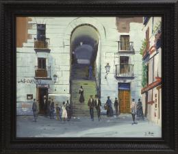 <span class='ref_item'>5 -</span> <span class="object_title">ARCO DE CUCHILLEROS, MADRID</span>   <p><span class="author">SANTIAGO DÍAZ SANTOS (Madrid, 1940)</span> <br><span class="technique_material">Óleo sobre lienzo</span><br><span class="technical_description">Firmado en el ángulo inferior izquierdo.<br/>Enmarcado<br/>Medidas: 75 x 88cm con marco. 60 x 73cm sin marco</span><br></p>
