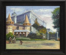 <span class='ref_item'>9 -</span> <span class="object_title">PASEO DE SAN VICENTE Y PALACIO REAL, HACIA 1905</span>   <p><span class="author">SANTIAGO DÍAZ SANTOS (Madrid, 1940)</span> <br><span class="technique_material">Óleo sobre lienzo</span><br><span class="technical_description">Firmado en el ángulo inferior derecho. Titulado al dorso.<br/>Enmarcado<br/>Medidas: 75 x 88cm con marco. 60 x 73cm sin marco</span><br></p>