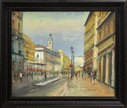 <span class='ref_item'>19 -</span> <span class="object_title">PUERTA DEL SOL, MADRID</span>   <p><span class="author">SANTIAGO DÍAZ SANTOS (Madrid, 1940)</span> <br><span class="technique_material">Óleo sobre lienzo</span><br><span class="technical_description">Firmado en el ángulo inferior derecho.<br/>Enmarcado<br/>Medidas: 75 x 88cm con marco. 60 x 73cm sin marco</span><br></p>