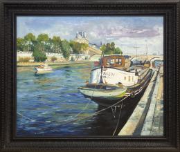 <span class='ref_item'>8 -</span> <span class="object_title">EL SENA, PARÍS</span>   <p><span class="author">SANTIAGO DÍAZ SANTOS (Madrid, 1940)</span> <br><span class="technique_material">Óleo sobre lienzo</span><br><span class="technical_description">Firmado en el ángulo inferior derecho. Titulado al dorso.<br/>Enmarcado<br/>Medidas: 75 x 88cm con marco. 60 x 73cm sin marco</span><br></p>