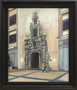<span class='ref_item'>26 -</span> <span class="object_title">MINISTERIO DE ASUNTOS EXTERIORES</span>   <p><span class="author">SANTIAGO DÍAZ SANTOS (Madrid, 1940)</span> <br><span class="technique_material">Óleo sobre lienzo</span><br><span class="technical_description">Firmado en el ángulo inferior derecho. Titulado al dorso.<br/>Enmarcado. Deterioros en el marco<br/>Medidas: 88 x 75cm con marco. 73 x 60cm sin marco</span><br></p>