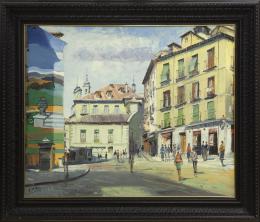 <span class='ref_item'>43 -</span> <span class="object_title">CALLE DE TOLEDO, MADRID</span>   <p><span class="author">SANTIAGO DÍAZ SANTOS (Madrid, 1940)</span> <br><span class="technique_material">Óleo sobre lienzo</span><br><span class="technical_description">Firmado en el ángulo inferior izquierdo. Titulado al dorso.<br/>Enmarcado<br/>Medidas: 75 x 88cm con marco. 60 x 73cm sin marco</span><br></p>