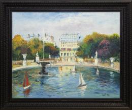 <span class='ref_item'>146 -</span> <span class="object_title">EL ESTANQUE DE LAS TULLERÍAS, PARÍS</span>   <p><span class="author">SANTIAGO DÍAZ SANTOS (Madrid, 1940)</span> <br><span class="technique_material">Óleo sobre lienzo</span><br><span class="technical_description">Firmado en el ángulo inferior derecho<br/>Enmarcado en madera ebonizada y tallada.<br/>Medidas: 75 x 88cm con marco. 60 x 73cm sin marco</span><br></p>