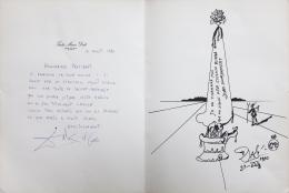 <span class='ref_item'>223 -</span> <span class="object_title">LITOGRAFÍA DE DALÍ</span>   <p><span class="author">SALVADOR  DALÍ (Figueras, 1904-1989)  </span> <br><span class="technical_description">Carpeta que contiene una misiva del presidente de la Generalitat de Catalunya para Salvador Dalí firmada y fechada; una litografía donde se muestra a la izquierda el agradecimiento de Dalí al presidente de la Generalitat por su misiva, firmada y fechada por Dalí. A la derecha la litografía del dibujo que Dalí le manda al presidente en agradecimiento, firmada y fechada en plancha. Esta edición consta de doscientos cincuenta ejemplares, numerados del 1 al 250, impresos sobre papel Super-Alfa Guarro. Este ejemplar concretamente es el nº 20.<br/>Incluye además una invitación para la inauguración de la exposición Salvador Dalí Obra Gráfica: Ciclos Literarios, en la cual, aparece un dibujo de Dalí, realizado expresamente para esa ocasión.</span><br></p>