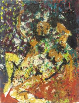 <span class='ref_item'>91 -</span> <span class="description">INVITACIÓN A LA IMAGINACIÓN </span>  <p><span class="description">ISIDORO LÁZARO FERRÉ (1949) <br>Óleo sobre lienzo<br>Composición abstracta en la que se intuyen dos cuerpos en tonos naranjas.<br>Firmado en el ángulo inferior derecho.<br>Al dorso titulado, firmado y dedicado.<br>Sin enmarcar.<br>81x65 cm.</span></p>