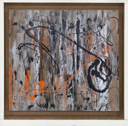 <span class='ref_item'>105 -</span> <span class="object_title">"OPUS II" (ABSTRACTO Nº 108)</span>   <p><span class="author">VACAS.  </span> <br><span class="technique_material">Acrílico sobre tabla</span><br><span class="technical_description">Obra abstracta en la que destacan los tonos negros, naranjas y grises. Firmado &#39;VACAS 24&#39; en el lado inferior. Titulado y firmado también al dorso.<br/>Enmarcado en un marco de madera con la parte frontal pintada en blanco que le proporciona profundidad.<br/>Medidas con marco: 42 x 42.5cm</span><br></p>