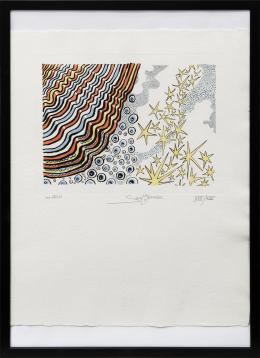 <span class='ref_item'>120 -</span> <span class="description">LES ETOILES </span>  <p><span class="description">SAÜLO MERCADER (Alicante, 1944) <br>Grabado<br>Firmado y titulado en la parte inferior. <br>Justificado: XXX/XXX. <br>Enmarcado con metacrilato. <br>Medidas: 53 x 73cm con marco. 28 x 32cm la huella</span></p>