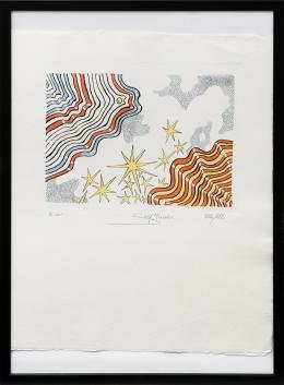 <span class='ref_item'>180 -</span> <span class="description">LE CIEL </span>  <p><span class="description">SAÜLO MERCADER (Alicante, 1944) <br>Grabado<br>Firmado y titulado por el autor en el ángulo inferior. <br>Justificado: XXX/XXX<br>Enmarcado con metacrilato. <br>Medidas: 28 x 38cm la huella. 73 x 53cm con marco</span></p>