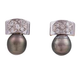 <span class='ref_item'>13 -</span> <span class="object_title">PENDIENTES EN ORO DE 18 KT. CON PERLAS TAHITI Y DIAMANTES</span>  <p><span class="technical_description">Pareja de pendientes realizados en oro de 18 kt. con perlas Tahití cultivadas ,con ligera forma alargada y en la parte superior adorno de diamantes en talla brillante con peso total aprox (0.10ct)<br/>Cierre: Presión<br/>Peso: 6,5 gr<br/> </span><br></p>