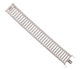 <span class='ref_item'>17 -</span> <span class="object_title">PULSERA ESTILO ART DECÓ EN ORO DE 18 KT. Y DIAMANTES</span>  <p><span class="technical_description">Espectacular pulsera estilo Art-Decó realizada en oro de 18 kt. formada por 34 barras con forma de I mayúscula cada una de ellas con 12 diamantes en talla brillante engastados en grano con un peso total aprox ( 8,15 ct)<br/>Cierre: Caja con lengüeta y doble ocho de seguridad.<br/>Longitud: 17 cm<br/>Ref: 1.47.6437<br/>Peso: 74,4 gr </span><br></p>