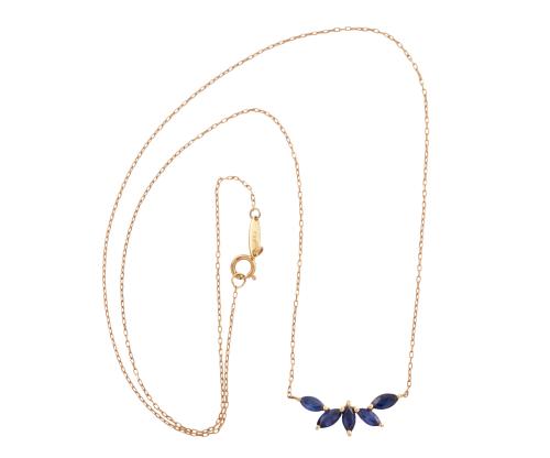 <span class='ref_item'>15 -</span> <span class="object_title">GARGANTILLA "MUNIT" EN ORO DE 18 KT. Y ZAFIROS</span>  <p><span class="technical_description">Gargantilla "MUNIT" realizada en oro de 18 kt. con fina cadena de eslabones barbados al final de esta una placa pequeña con la Firma, en el centro detalle de zafiros en talla marquise con peso total aprox (0.35 ct).Cierre con reasa<br/>Longitud: 40 cm<br/>Peso: 1,3 gr</span><br></p>