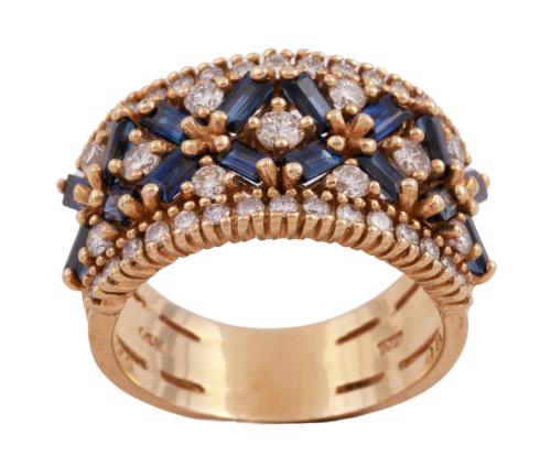 <span class='ref_item'>10 -</span> <span class="object_title">SORTIJA EN ORO DE 14 KT. CON ZAFIROS Y DIAMANTES</span>  <p><span class="technical_description">Sortija realizada en oro de 14 kt. con centro adornado por zafiros en tallas baguette con peso total aprox (0.40ct ) y diamantes en tallas brillante con peso total aprox ( 0.50 ct ) <br/>Medida sortija: 12<br/>Ref: 1.76.9243<br/>Peso: 8,5 gr</span><br></p>