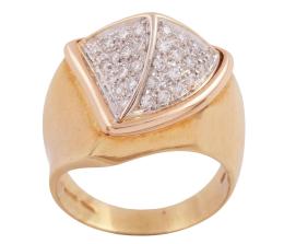 <span class='ref_item'>239 -</span> <span class="description">SORTIJA EN ORO BICOLOR 18KT Y DIAMANTES</span>  <p><span class="description">Sortija realizada en oro bicolor de 18kt. Forma de pirámide con cuajado de diamantes en talla brillante en dos de los lados con vistas en blanco y peso total aprox 0.42ct<br>Medida Sortija: 18<br>RefC 70956<br>Peso: 8,70 gr.</span></p>
