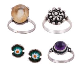 <span class='ref_item'>249 -</span> <span class="object_title">LOTE DE TRES SORTIJAS Y PENDIENTES "TOUS" EN PLATA 925</span>  <p><span class="technical_description">Lote compuesto por tres sortijas y pareja se pendientes " Tous" realizados todos ellos en plata 925. Las sortijas con diseño antiguo estás adornadas con piedras de color citrino y granate y por botón charro. Medidas sortijas: 10 y 11. La pareja de pendientes firmados por "Tous" en sus presiones están adornados por pequeñas flores centrales con esmalte<br/>Peso total: 12.2 gr</span><br></p>