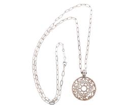 <span class='ref_item'>247 -</span> <span class="object_title">COLGANTE Y CADENA "TOUS" EN PLATA 925.COLGANTE FILIGRANA</span>  <p><span class="technical_description">Colgante y cadena "TOUS" realizados en plata 925. El colgante con forma redonda y adornos de filigrana. Diámetro: 3,5 cm<br/>La cadena de eslabón largo ovalado y cierre de mosquetón. Longitud: 80 cm, al final de la cadena sobre un eslabón con forma de oso de Tous, aparece el nº V001<br/>Peso total: 25,6 gr<br/> </span><br></p>