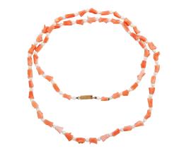 <span class='ref_item'>235 -</span> <span class="object_title">COLLAR CON CORAL, PERLAS CULTIVADAS Y BROCHE EN ORO DE 18 KT</span>  <p><span class="technical_description">Collar largo compuesto por cuentas alargadas de coral alternadas con pequeñas perlas cultivadas. Broche estriado en oro de 18 kl<br/>Cierre: Tubular con pasador interno<br/>Longitud: 60 cm<br/>Peso. 15,4 gr</span><br></p>