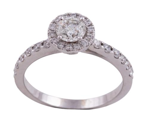 <span class='ref_item'>240 -</span> <span class="object_title">SORTIJA  SOLITARIO EN ORO DE 18 KT. Y DIAMANTES</span>  <p><span class="technical_description">Sortija tipo Solitario realizado en oro de 18 kt. con diamante central en talla brillante con peso aprox ( 0.40ct) y adorno en orla y hombros de diamantes en talla brillante con peso total aprox(0.35 ct). Peso total aprox de los diamantes: ( 0.75 ct)<br/>Medida sortija: 13<br/>Peso: 3.7 gr</span><br></p>