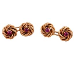 <span class='ref_item'>35 -</span> <span class="object_title">GEMELOS DE DOBLE BOTÓN EN ORO DE 18 KT.CON RUBIES SÍNTETICOS</span>  <p><span class="technical_description">Par de gemelos con doble botón realizados en oro de 18 kt. con diseño circular de nudos y en el centro rubíes sintéticos</span><br>Peso: <span class="PESO_HCES1">8,50</span> <span class="PESOUMED_HCES1">gr.</span><br></p>