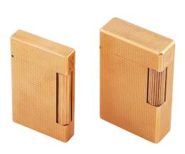 <span class='ref_item'>29 -</span> <span class="object_title">LOTE DE DOS ENCENDEDORES " S.T. DUPONT "CHAPADOS EN ORO , UNO DE ELLOS CON CAJA ORIGINAL Y CERTIFICADO DE GARANTÍA</span>  <p><span class="technical_description">Lote compuesto por dos encendedores " S.T. Dupont " , chapados en oro y ambos con decoración de punta de diamante.<br/>Uno de ellos con medidas: 5,5 x 3 x 0,5 cm. Con numeración grabada: 85 JAY 62 en su caja original y con tarjeta de certificación. Con peso: 76,7 gr<br/>El otro con medidas: 5,7 x 3,5 x 1,7 cm. Con numeración grabada: 1 1 1  C G S Lleva grabación en parte estrecha de la tapa: A V entrelazadas. Con peso:104,6 gr. Los dos necesitan gas<br/> </span><br></p>