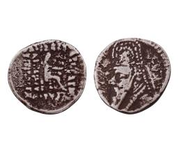 <span class='ref_item'>34 -</span> <span class="object_title">DRACMA EN PLATA DE LEY 950MM DEL IMPERIO PARTO (SIGLO I a.C.)</span>  <p><span class="technical_description">Anverso: busto de perfil izquierdo tocado con tiara del rey, posiblemente Fraatres III (69-57 a.C.)<br/>Reverso: Arquero entronizado rodeado por una inscripción en griego.<br/>Diámetro: 15mm<br/>Peso: 2.4gr</span><br></p>