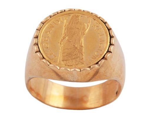 <span class='ref_item'>31 -</span> <span class="object_title">SORTIJA SELLO EN ORO DE 18 KT</span>  <p><span class="technical_description">Sortija sello con frontal adornado con imagen clásica y en torno la leyenda: Le grandi religioni<br/>Medida sortija: 12</span><br>Peso: <span class="PESO_HCES1">9,7</span> <span class="PESOUMED_HCES1">gr.</span><br></p>