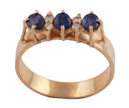 <span class='ref_item'>38 -</span> <span class="object_title">SORTIJA  EN ORO DE 18 KT. ZAFIROS Y DIAMANTES</span>  <p><span class="technical_description">Sortija realizada en oro de 18 kt. con tres zafiros en su parte central en talla oval con peso total aprox ( 0.75 ct) y adorno de pequeños diamantes en talla brillante<br/>Medida sortija: 12<br/>Peso: 3,9 gr</span><br></p>