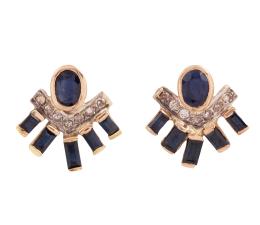 <span class='ref_item'>158 -</span> <span class="object_title">PENDIENTES EN ORO BICOLOR DE 18 KT. ZAFIROS Y DIAMANTES</span>  <p><span class="technical_description">Pareja de pendientes realizados en oro bicolor de 18 kt. Formados por zafiros en tallas ovales y baguettes  con peso total aporx ( 0.40 ct) y diamantes en talla brillante sobre vistas en blanco con peso total aprox(0.15 ct).<br/>Cierre: Presión<br/>Peso : 3,3 gr</span><br></p>