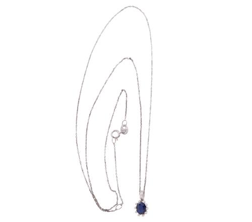 <span class='ref_item'>155 -</span> <span class="object_title">COLGANTE Y CADENA EN ORO DE 18KT, ZAFIRO Y DIAMANTES</span>  <p><span class="technical_description">Colgante y cadena realizados en oro de 18kt. Colgante con zafiro en talla oval con peso aprox (0.36ct) y sobre asa de colgar pequeños diamantes en talla brillante con peso total aprox (0.02ct). Cadena de eslabón barbado y cierre de reasa. Longitud de dos medidas: 40cm y 45cm (con adaptador).</span><br>Peso: <span class="PESO_HCES1">1,3</span> <span class="PESOUMED_HCES1">gr.</span><br></p>