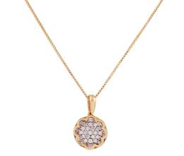 <span class='ref_item'>184 -</span> <span class="description">COLGANTE Y CADENA EN ORO 18KT Y DIAMANTES</span>  <p><span class="description">Colgante y cadena realizados en oro de 18kt. El colgante cuajado de diamantes en talla brillante con peso total aprox de 0.35ct. Cadena con pequeños eslabones cónicos<br>Cierre: Mosquetón<br>Longitud: 40cm la cadena, 3 cm el colgante<br>Peso: 6,60 gr.</span></p>