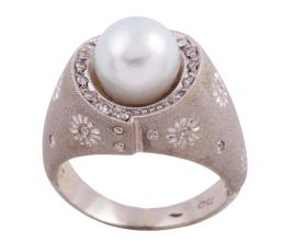 <span class='ref_item'>189 -</span> <span class="description">SORTIJA EN ORO 18KT, PERLA Y DIAMANTE</span>  <p><span class="description">Sortija realizada en oro de 18kt. Perla cultivada de color blanco calibrada aprox en 7,8mm y diamantes en talla brillante con peso aprox 0.08ct<br>Medida Sortija: 10<br>RefC GE-3215<br>Peso: 8,10 gr.</span></p>