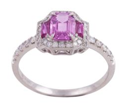 <span class='ref_item'>178 -</span> <span class="object_title">SORTIJA EN PLATINO, ZAFIROS ROSAS Y DIAMANTES</span>  <p><span class="technical_description">Sortija realizada en platino. Adornada con zafiros rosas en tallas rectangular y esmeralda con peso total aprox 1.18ct y en orla y hombros diamantes en talla brillante con peso total aprox 0.30ct<br/>Medida Sortija: 17<br/>Ref 16337</span><br>Peso: <span class="PESO_HCES1">4,4</span> <span class="PESOUMED_HCES1">gr.</span><br></p>