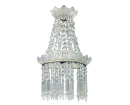 <span class='ref_item'>203 -</span> <span class="description">LÁMPARA DE TECHO CON CRISTAL TALLADO</span>  <p><span class="description">Lámpara de techo realizada en cristal tallado con dos cuerpos. Falta algunos de los hilos colgantes. Altura: 50cm</span></p>