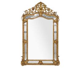 <span class='ref_item'>217 -</span> <span class="object_title">GRAN ESPEJO DE PARED, LUIS XVI (S. XIX)</span>   <p><span class="technical_description">Espejo de pared con gran marco realizado en madera tallada y calada, trabajada en dorado. Con decoración en escayola de rocalla y vegetal en todo el marco. El espejo presenta detalles circulares que enmarcan el central.<br/>Presenta pequeñas faltas de escayola. <br/>Medidas: 190x115cm</span><br></p>