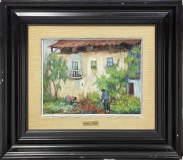 <span class='ref_item'>111 -</span> <span class="description">JARDINEROS PODANDO LOS ARBUSTOS DE UNA CASA </span>  <p><span class="description">EMILIO CAMPOS GOITIA (Bilbao, 1931-2003) <br>Óleo sobre tabla<br>Firmado en el ángulo inferior izquierdo. <br>Con marco de madera negro. Placa con nombre del autor. Faltas en el marco<br>Medidas: 52 x 60cm con marco.</span></p>